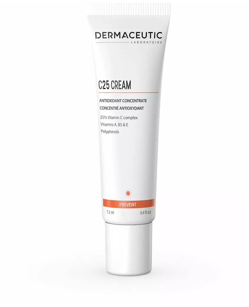 Dermaceutic Laboratoire C25 Cream is a powerful antioxidant treatment containing 25% stabilized vitamin C, designed to brighten the skin, even out skin tone, and protect against environmental damage.
