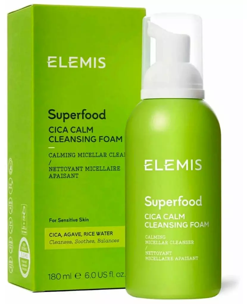 Elemis Superfood CICA Calm Cleansing Foam gently purifies and refreshes the skin, leaving it feeling calm and revitalized.