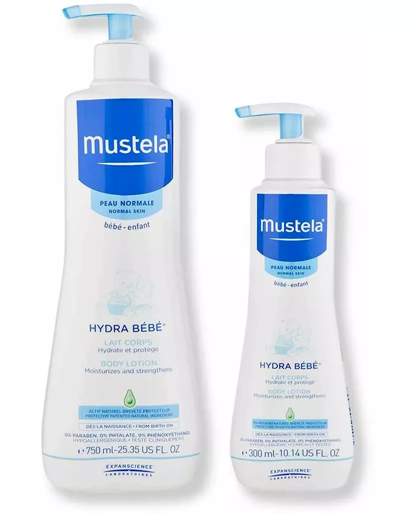 Mustela Hydra Bebe Body Lotion provides long-lasting hydration and strengthens the skin barrier while leaving your baby's skin feeling soft, supple, and delicately scented.