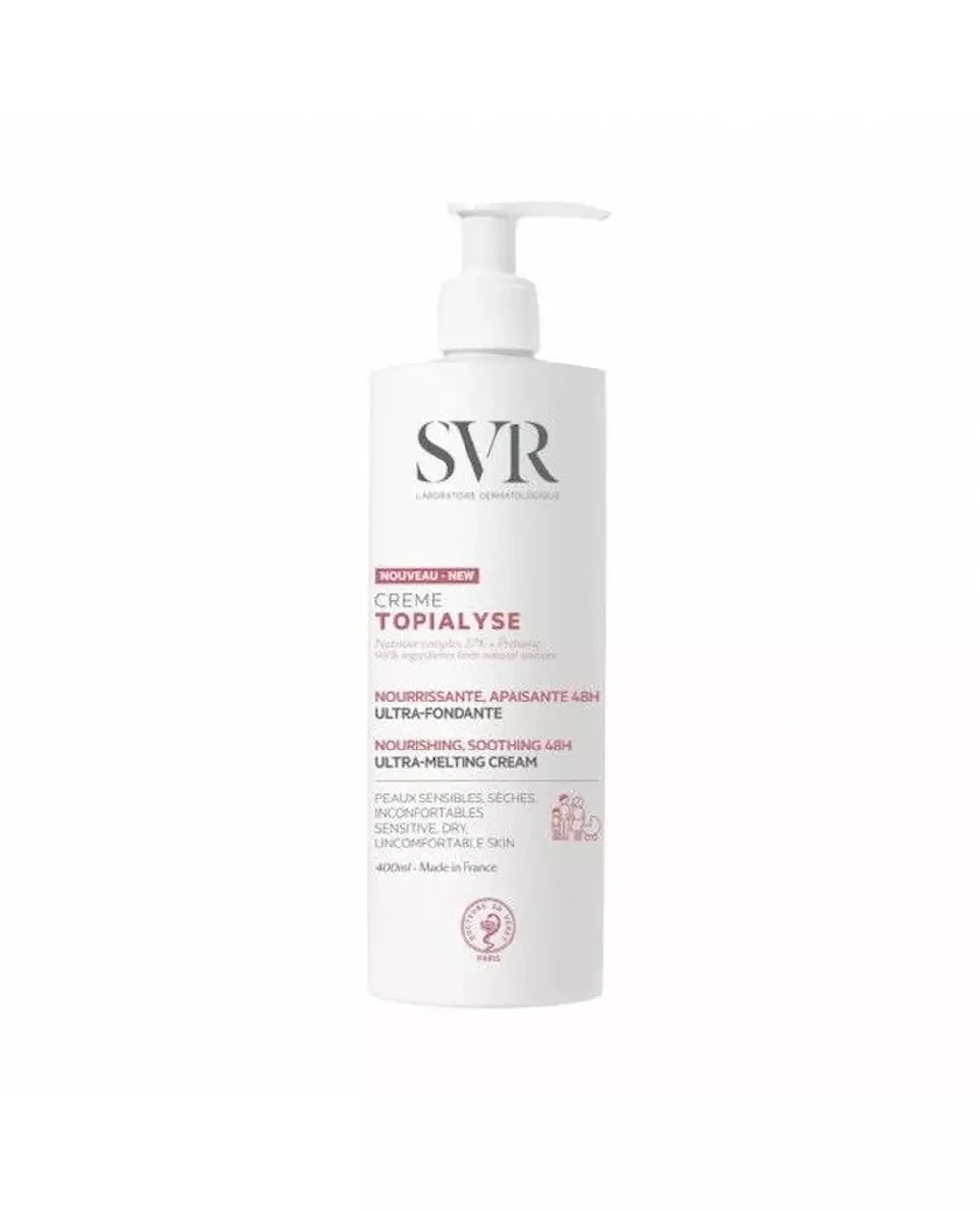 SVR Topialyse Ultra-Melting Cream, a generous 400 ml, is a dermatologist-recommended solution that provides intense hydration and lasting comfort for dry and sensitive skin, leaving it soft, supple, and protected while maintaining the skin's natural barrier.