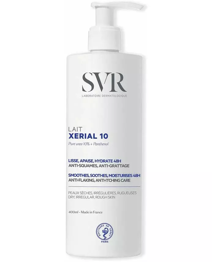 SVR Xerial 10 Lait Body Lotion is an intensive moisturizing lotion enriched with urea to deeply hydrate and exfoliate dry, rough skin, leaving it soft, smooth, and comfortable.